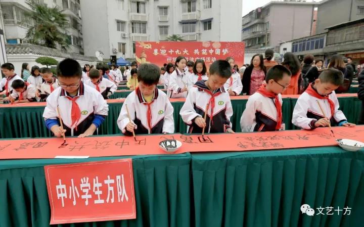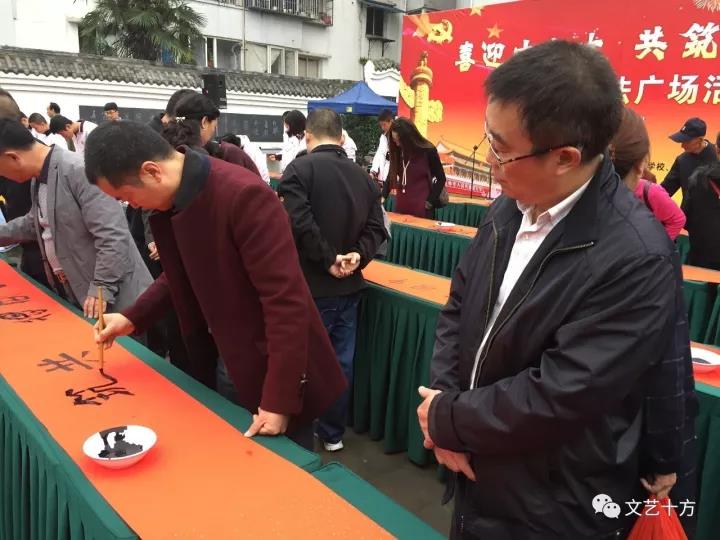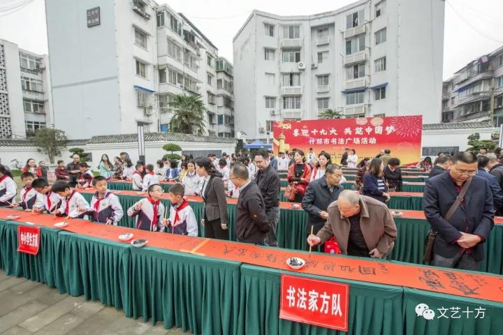 首先,中共什邡市委宣传部副部长、市文联主席汪韬主持并介绍活动的背景和目的。之后,中小学方队、书法家方队、社区群众方队一起挥毫泼墨,有的写“永远跟党走”,有的写“感恩奋进”,有的写“同心同德”……抒发着喜迎十九大的激情,共筑中国梦的豪迈。