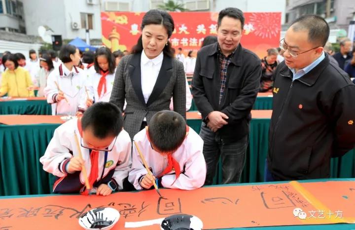 10月13日上午,在什邡书法广场举办了“喜迎十九大,共筑中国梦”主题活动。本次活动由中共什邡市委宣传部、什邡市文联主办,什邡市书法家协会、什邡市七一城西学校、方亭街道回龙街社区承办。9时30分,活动正式开始。什邡市人大主任鞠道志,什邡市政协主席殷萍,什邡市城管局局长彭德贵以及书法家、社区群众和中小学生190人参加了此次活动。