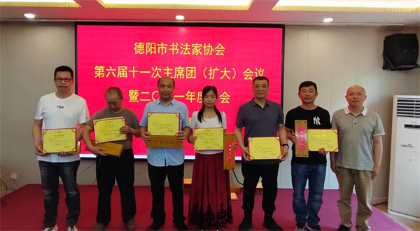 5月7日,德阳市书法家协会召开六届十一次主席团(扩大)会。市文联三级调研员陈国世、文艺发展部部长鲁丹丹出席会议,市书协顾问林长龙、书协主席团成员、区(市、县)书协主席、秘书长等参加会议。