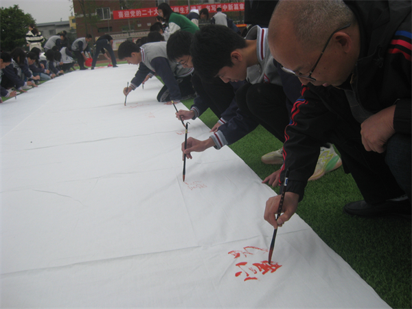 此次活动以书法为载体,在青少年中积极传递新时代正能量,营造浓厚的爱党爱国氛围,通过书法作品弘扬社会主义核心价值观,书法家和全校师生共同表达了“请党放心,强国有我”的心声。