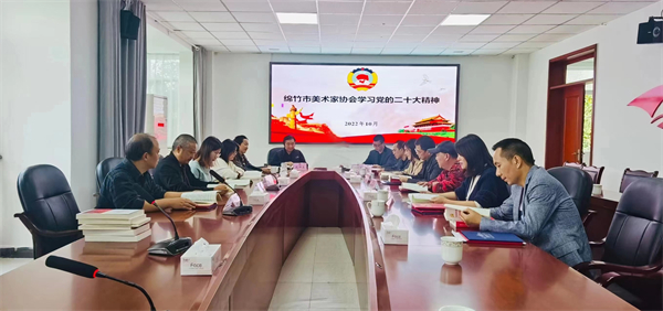 10月20日,绵竹市美协组织骨干会员学习党的二十大报告精神,并交流心得体会。