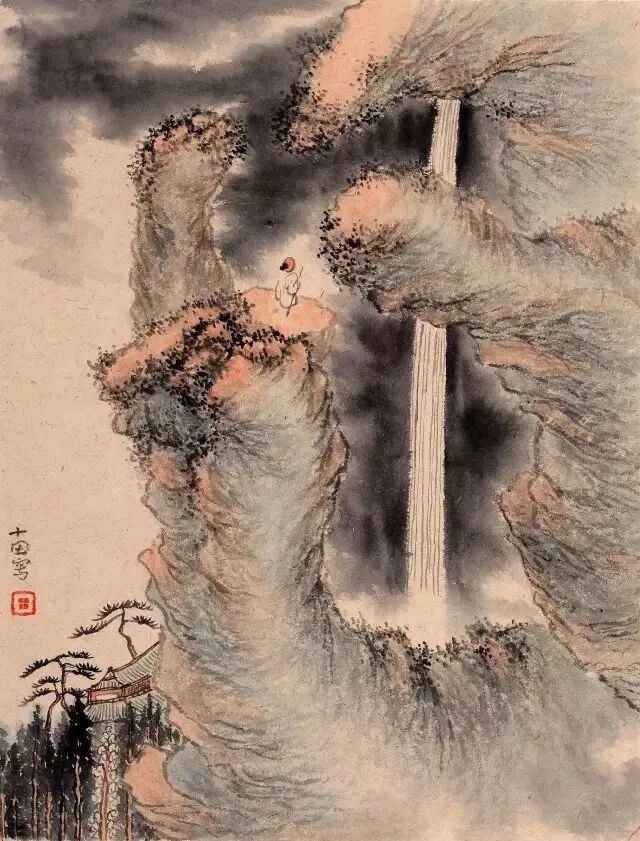 ▲图为 陈十田《飞瀑涤俗尘》 44cm×33cm 纸本设色(山水)