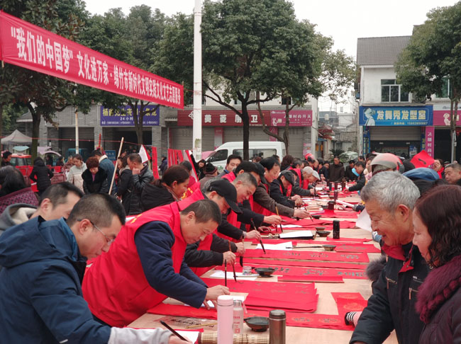 近日,绵竹市文联积极组织书法家协会和老年诗书画协会开展“我们的中国梦——文化进万家”·新时代文明实践文化文艺志愿服务暨“送祝福、送春联、送文化”惠民活动。