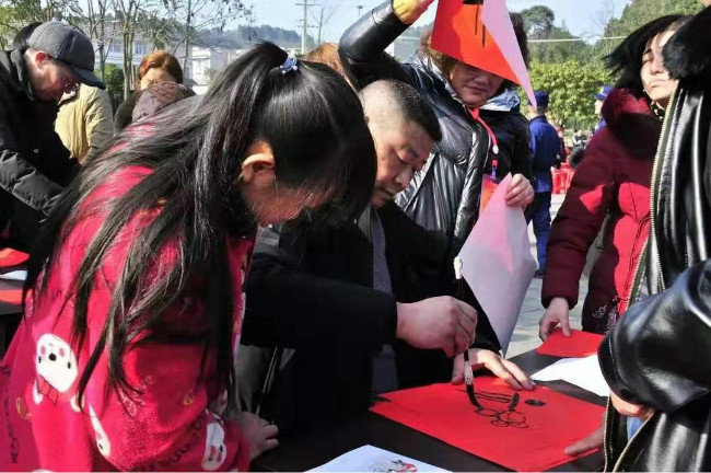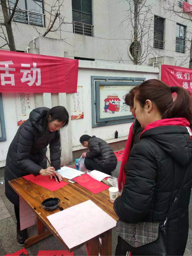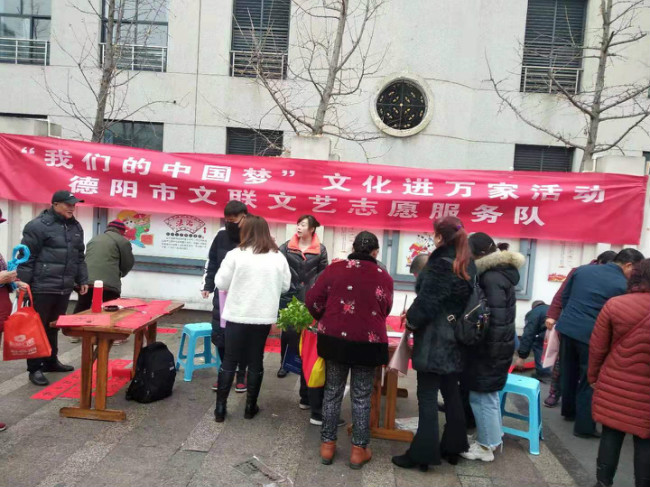 2020年元旦、春节期间,德阳市书画院文艺志愿服务小分队积极响应市委宣传部号召,在市文联的安排部署下,组织文艺志愿者分赴全市基层社区、乡镇,开展7场“我们的中国梦——文化进万家”文化惠民志愿服务活动,为老百姓义务书写春联“福”字。