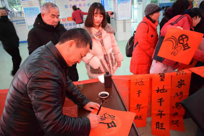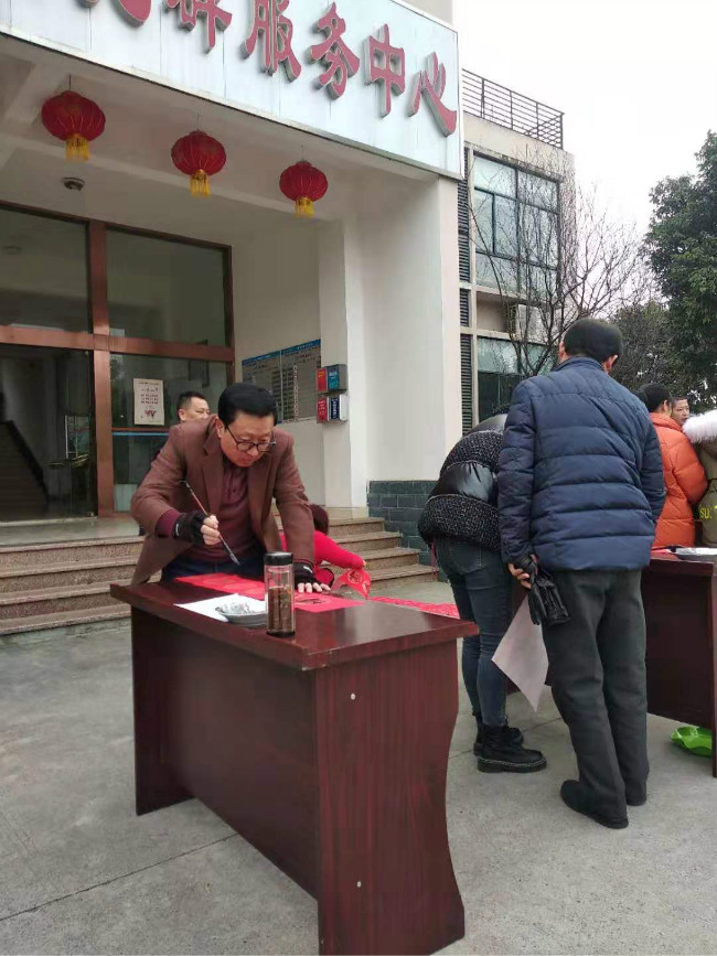 1月9日,市书画院副院长唐太智带领5位志愿者到德新镇和海,配合和海灯会开灯式,现场创作赠送美术作品18件;1月10日,市老领导、市政协书画院顾问侯富林带领书画院5位志愿者前往罗江区白马关镇万佛村为百姓义务书写春联“福”字;1月17日,市书画院副院长唐太智带领6位志愿者前往市第二人民医院为医护人员、患者及家属义务书写春联“福”字;1月18日,市书画院副院长唐太智带领8位志愿者到市区兰花巷社区为社区百姓义务书写春联“福”字;1月19日,市书画院5位志愿者随市文联文艺志愿服务队前往中江县仓山镇为老百姓义务书写春联“福”字;1月20日,市老领导、市政协书画院顾问侯富林带领书画院5位志愿者前往旌阳区八角井街道办东升社区为群众义务书写春联“福”字;1月21日,市书画院副院长唐太智带领6位志愿者到鸿安公司为职工及家属义务书写春联“福”字。7场活动,市书画院文艺志愿服务小分队共为群众义务书写春联1300余副,“福”字900余个。文艺志愿者们纷纷表示,此次系列活动充分体现了文艺为民,文化惠民的精神,增强了艺术服务人民的使命感责任感,艺术家的心更加贴近群众,贴近生活,在新春佳节来临之际,为广大基层群众送去关怀和温暖,是艺术家最欣慰的事,希望以后多多参与。