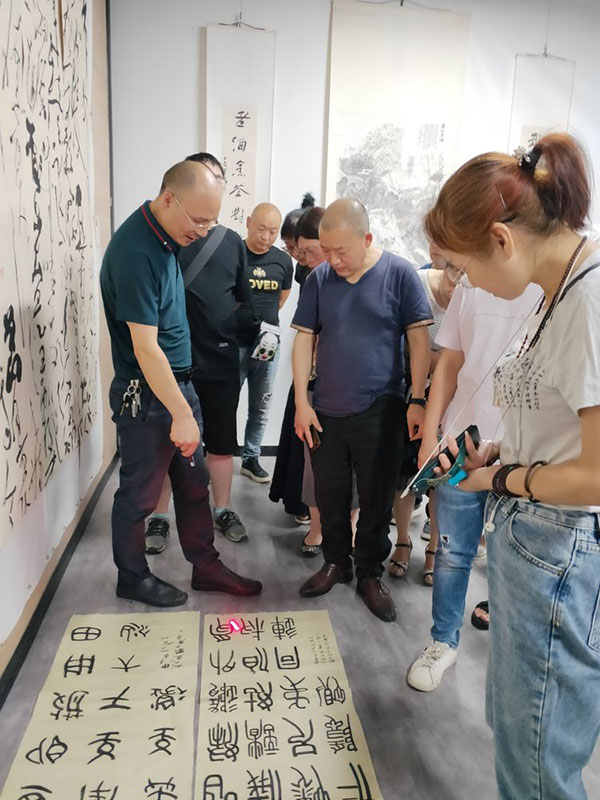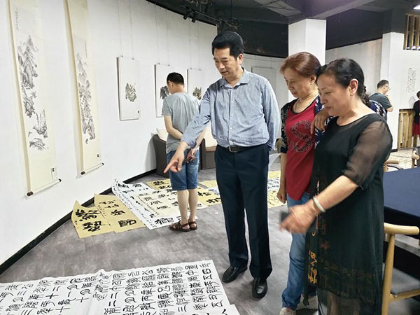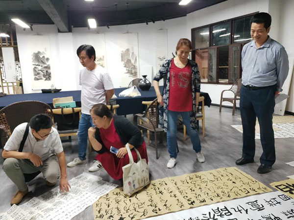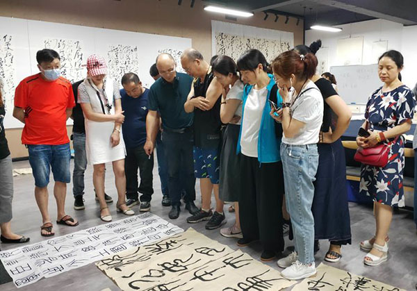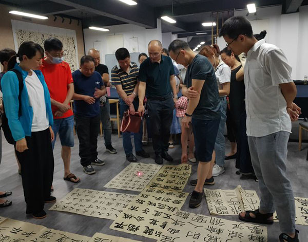 讲解结束后,唐笑天、白斌、谭桥、杨章军等几位老师又对书法爱好者们带来的临习作业进行了逐一点评,一句句切中要害的点评使书法爱好者们受益匪浅。