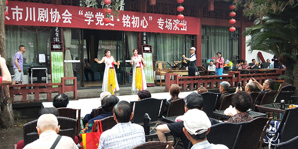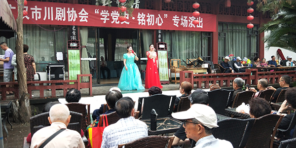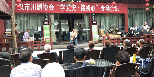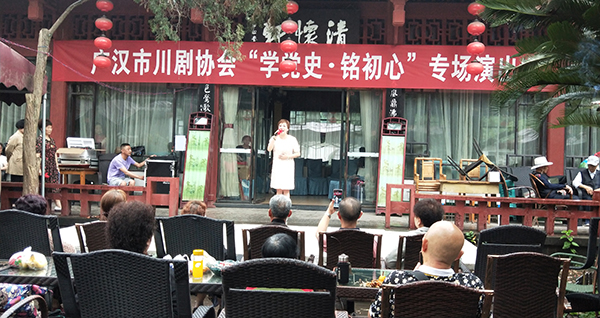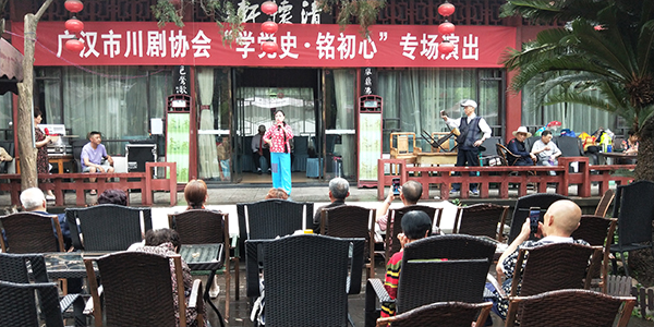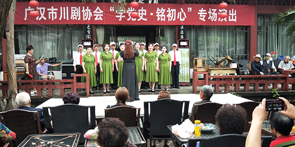 为庆祝建党100周年,5月10日上午,广汉市川剧协会“学党史-铭初心”专场演出在房湖公园上演。