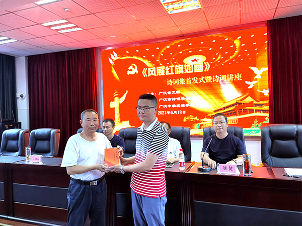 6月18日下午,广汉市文联、广汉市诗词学会、广汉中学实验学校联合举办了庆祝中国共产党成立100周年《风展红旗如画》诗词集首发式暨诗词讲座。