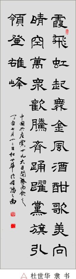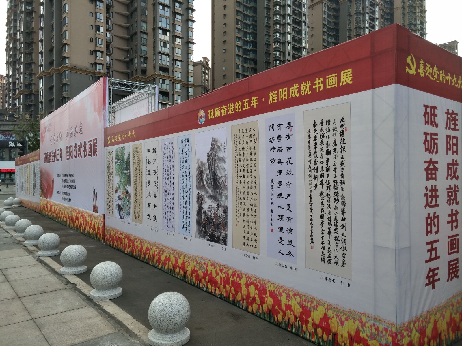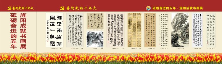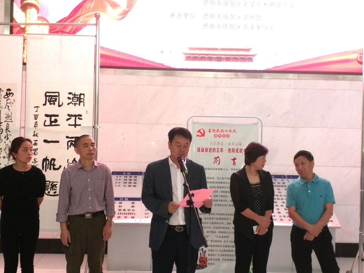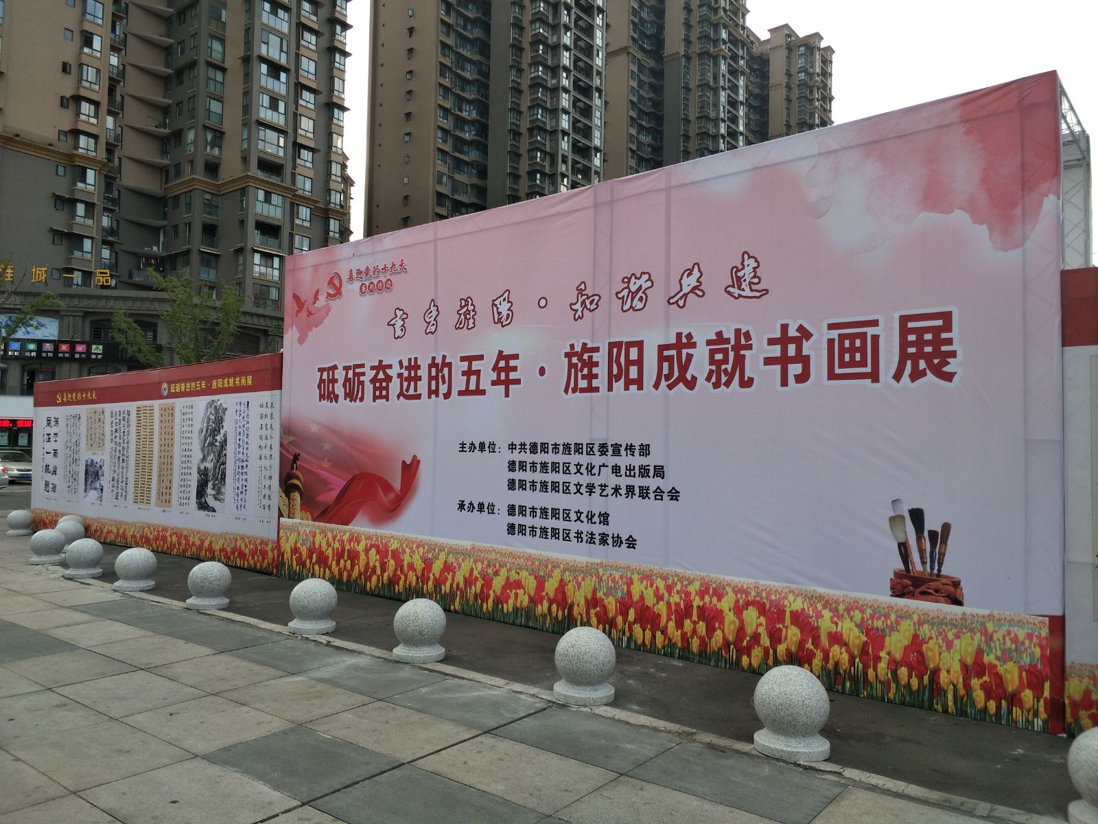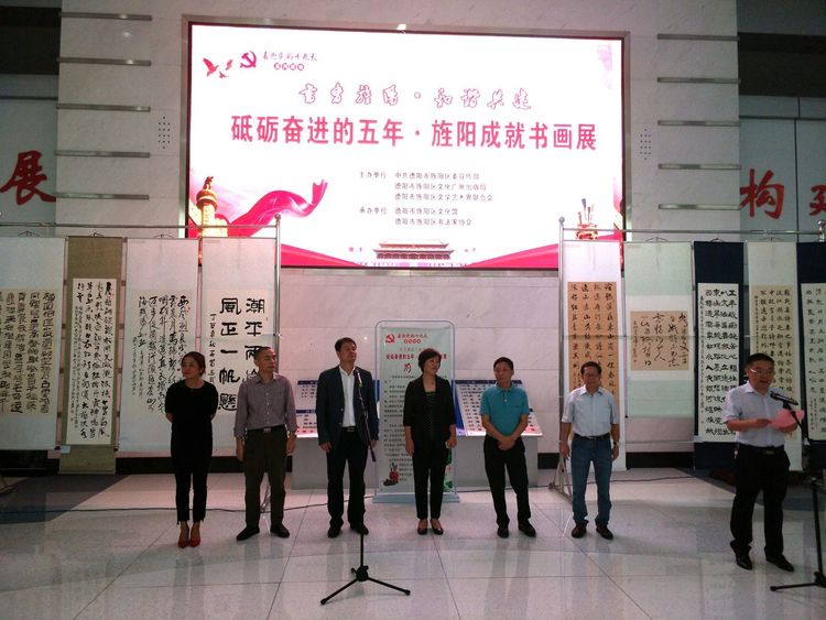 为迎接党的十九大胜利召开,庆祝建国六十八周年,旌阳区建区二十周年,展示党的十八大以来,旌阳区砥砺奋进的辉煌历程。由旌阳区委宣传部、旌阳区文化广电出版局、旌阳区文联主办,旌阳区文化馆、旌阳区书法家协会承办的《砥砺奋进的五年·旌阳区成就书画作品展览》于9月30日上午10:30在旌阳区政府办公大楼二楼大厅举行开幕式。