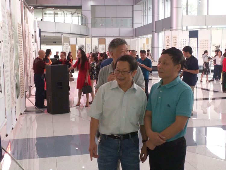 区书协肖建康主席陪同旌阳区政协主席梁仕全参观书画作品